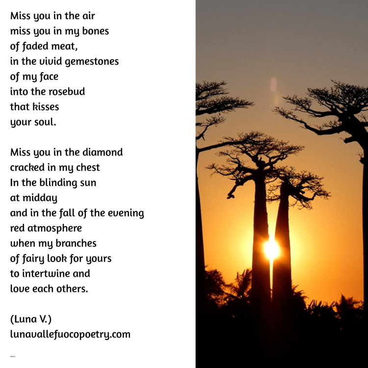 Provate a chiudere gli occhi e a immaginare un mondo senza amore, non potrebbe esistere perché l’amore in tutte le sue forme è la forza motrice e primordiale che smuove il mondo e parlo non solo dell’amore passionale ma anche dell’amore materno, fraterno, amichevole, canino, felino e verso tutti gli animali di tutte le specie possibili e immaginabili come anche l’amore verso i quattro elementi della natura: terra, fuoco, aria e acqua.